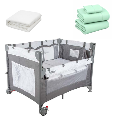 Cuna colchon Playard Always Proyector más Sabana Menta Oasis | Paris