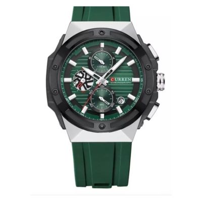 Somos "Sometimes chile". Distribuidores Exclusivos en Chile de la marca Curren Los relojes Curren son una marca de relojes de moda asequibles que ofrece una amplia gama de modelos para hombres y mujeres. Los relojes Curren se caracterizan por su diseño moderno y elegante, así como por su buena relación calidad-precio. Los modelos suelen estar fabricados con materiales de alta calidad, como acero inoxidable o piel, y ofrecen una variedad de funciones, como cronógrafo, calendario, alarma, etc. Los relojes Curren son una buena opción para personas que buscan un reloj moderno y elegante a un precio asequible. A continuación, se presentan algunas de las características clave de los relojes Curren: Diseño moderno y elegante: Los relojes Curren se caracterizan por su diseño moderno y elegante, que combina elementos clásicos con toques de moda. Buenos materiales: Los relojes Curren suelen estar fabricados con materiales de alta calidad, como acero inoxidable o piel, que garantizan su durabilidad. Buena relación calidad-precio: Los relojes Curren ofrecen una buena relación calidad-precio, lo que los hace una opción asequible para personas con un presupuesto limitado. Algunos de los modelos más populares de relojes Curren incluyen: Modelos analógicos: Los modelos analógicos de Curren son una buena opción para personas que buscan un reloj clásico y elegante. Los modelos suelen tener un diseño simple y minimalista, con una esfera analógica y una correa de piel o acero inoxidable. Modelos digitales: Los modelos digitales de Curren son una buena opción para personas que buscan un reloj funcional y con una variedad de funciones. Los modelos suelen tener una pantalla digital, cronógrafo, calendario, alarma, etc. Modelos deportivos: Los modelos deportivos de Curren son una buena opción para personas que buscan un reloj resistente y duradero. Los modelos suelen tener una caja de acero inoxidable, una correa de goma o nylon, y una resistencia al agua de hasta 50 metros. Los relojes Curren están disponibles en una amplia gama de colores y estilos, lo que los hace una opción adecuada para personas de todas las edades y estilos de vida. Reloj de Hombre de la marca Curren pertenece a la colección 8462 y es modelo KREe0902 cuenta con una caja de Acero Inoxidable de 40mm de diámetro color Plateado, Un tablero color Verde y una correa de Silicona color Verde tiene unas medidas de 20mm x 240mm con un cierre tipo Hebilla, este reloj tiene una resistencia al agua de 3 ATM, fue fabricado en China