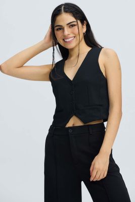 Blazer sin Mangas con Abertura Lateral Talla Curvy