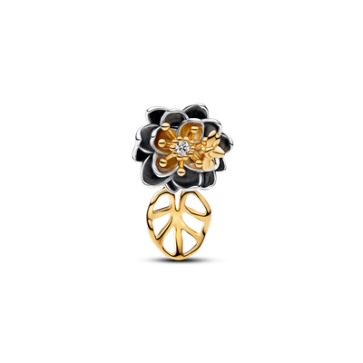 Deja que tus sueños florezcan. Este charm de plata esterlina y bañado en oro de 14k presenta el lirio de agua de Tiana, de Disney, con un brillante diamante cultivado en laboratorio, una divertida luciérnaga y una delicada hoja colgante.
