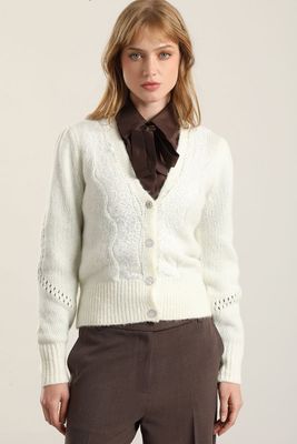 Cardigan Punto Aplicacion Encaje, Crudo Liola | Paris