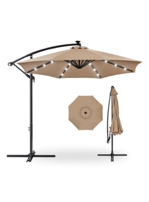 Vincenzi - Quitasol Sombrilla Lateral Terraza 3X3 Panel Solar Luz Led Beige
