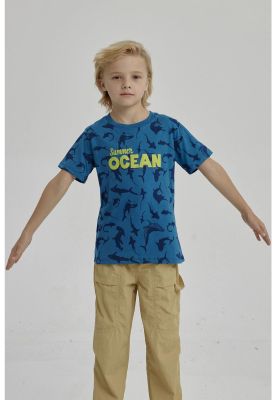 Polera Niño Mini Print Posicional Azul Petroleo | Paris