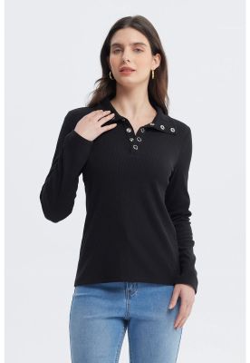 Polera Mujer Con Botón Negro | Paris