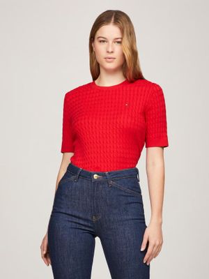 Sweater Tejido Cable Slim Fit Rojo Tommy Hilfiger | Paris