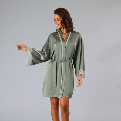 Bata Satín Encaje Rosado