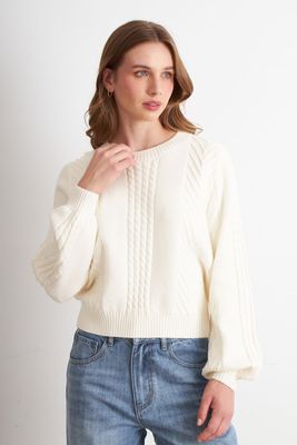 Sweater Trenzado Cuello Redondo Blanco Nicopoly | Paris