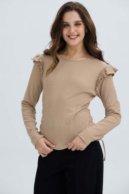 Polera Mujer Con Vuelo Rib Recogido Beige Oscuro | Paris