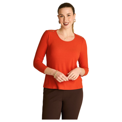 Polera Rib Terracota Manga 3/4 con Aplicación en Hombros | Paris