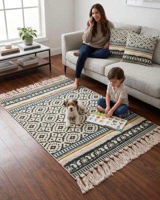 Pack Alfombra 60x90 cm + 2 Fundas de Cojín con Bordado Tufting y Flecos A2