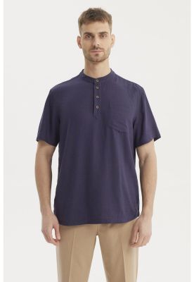 Camisa Hombre Slim Cuello Camisero Azul