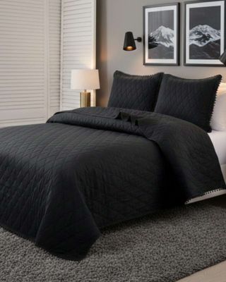 Cobertores de Verano-Primavera con Diseño de Pompon (king-super king) negro