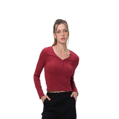 Polera Mujer Abotonada Burdeo Fashion's Park | Paris