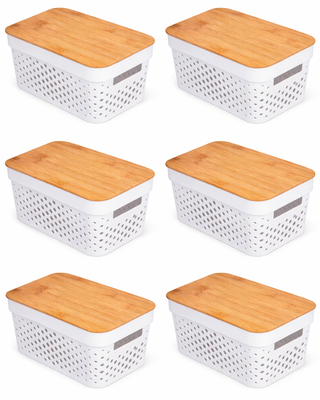 Pack 6 Cajas Organizadoras Tapa Bambu Canastos Multiuso 4.5 Litros | Paris