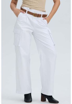 Pantalón Mujer Pretina Alta Con Cinturón Blanco | Paris