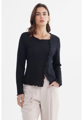 Polera Mujer Asimétrica Botones Negro