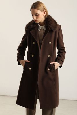 Abrigo Cuello Piel, Muflon Chocolate Liola | Paris