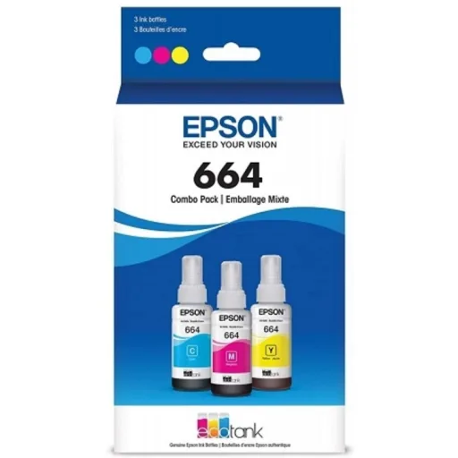 Botellas de Tinta Epson Ecofit Color Cian Magenta y Amarillo T664 3 Unidades