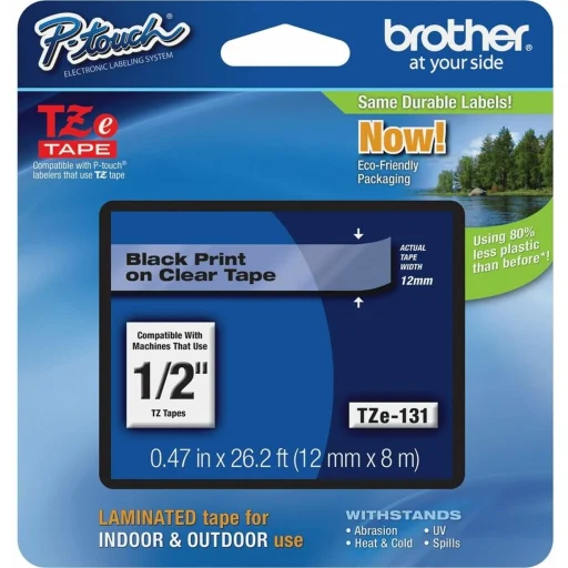 Cinta Laminada Brother TZE-131 Texto Negro sobre fondo Transparente 12mm 8mt | Tecnomas