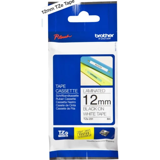 Cinta Brother TZE-231 12mm x 8m Texto Negro Sobre Blanco