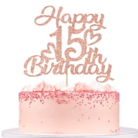 Adorno Para Tartas Unoggsor Con Purpurina En Oro Rosa, Feliz 15 Cumpleaños