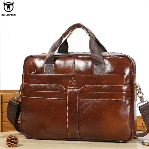 BULLCAPTAIN-cartera de negocios de cuero genuino para hombre, tarjetero multifunción, tarjetero pequeño, monedero de cuero